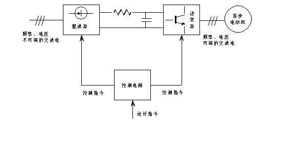 AC-DC-AC變頻器的工作原理是利用微電子器件、電力電子器件和控制技術(shù),先將工頻電源通過(guò)二極管整流成直流電源,再經(jīng)過(guò)電力電子器件,將直流電源轉(zhuǎn)換為可調(diào)頻率交流電源,AC-DC-AC變頻器的工作原理圖如下。